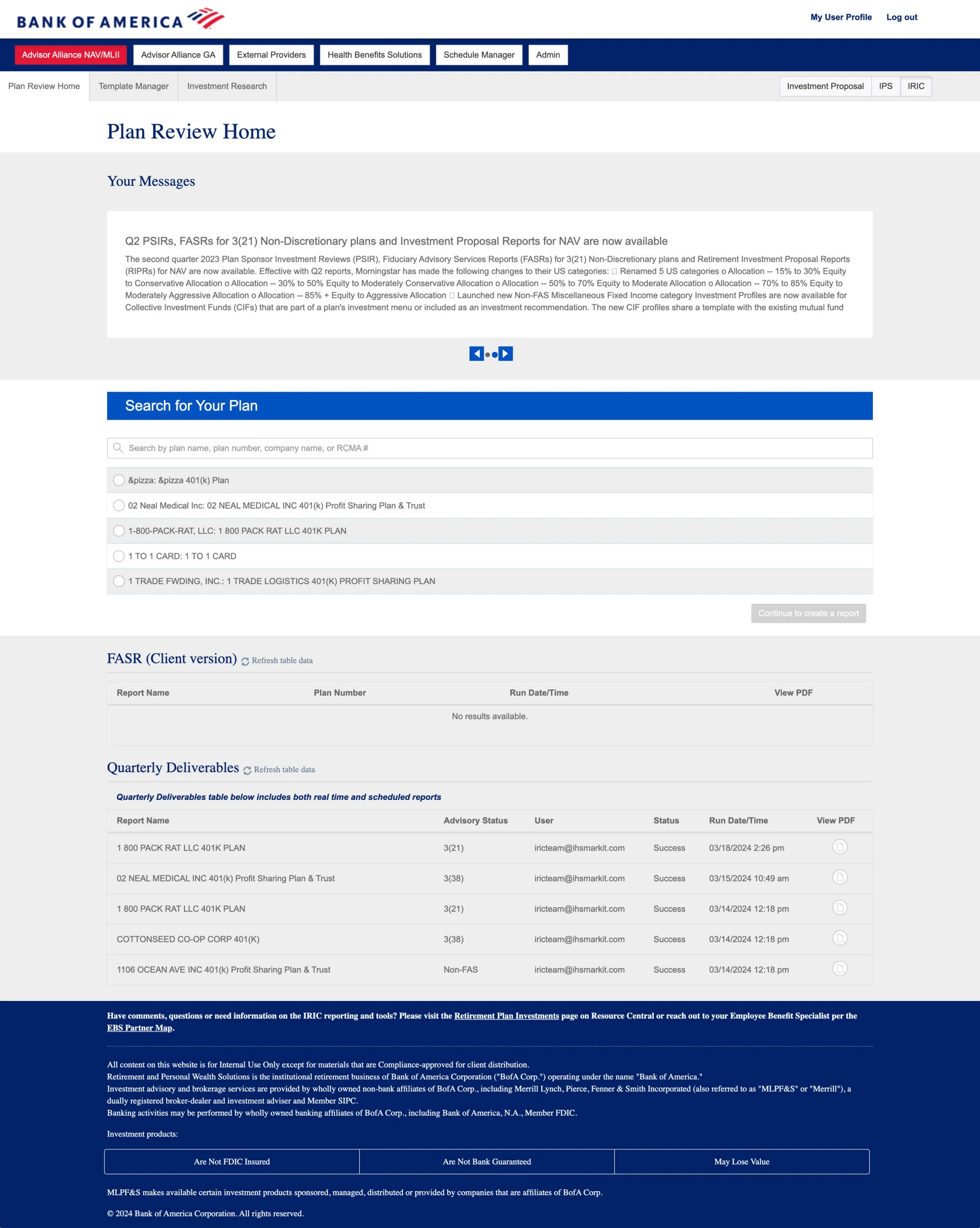 Bank of America’s institutional retirement reporting platform (iRIC) faced a decade of design debt, leading to advisor frustration, a high risk of churn, and approximately $5 billion in annual asset management fees at stake. I had to lead a complete UX overhaul with a "zero new-backend" constraint; every improvement had to be achieved through IA and interaction design alone.